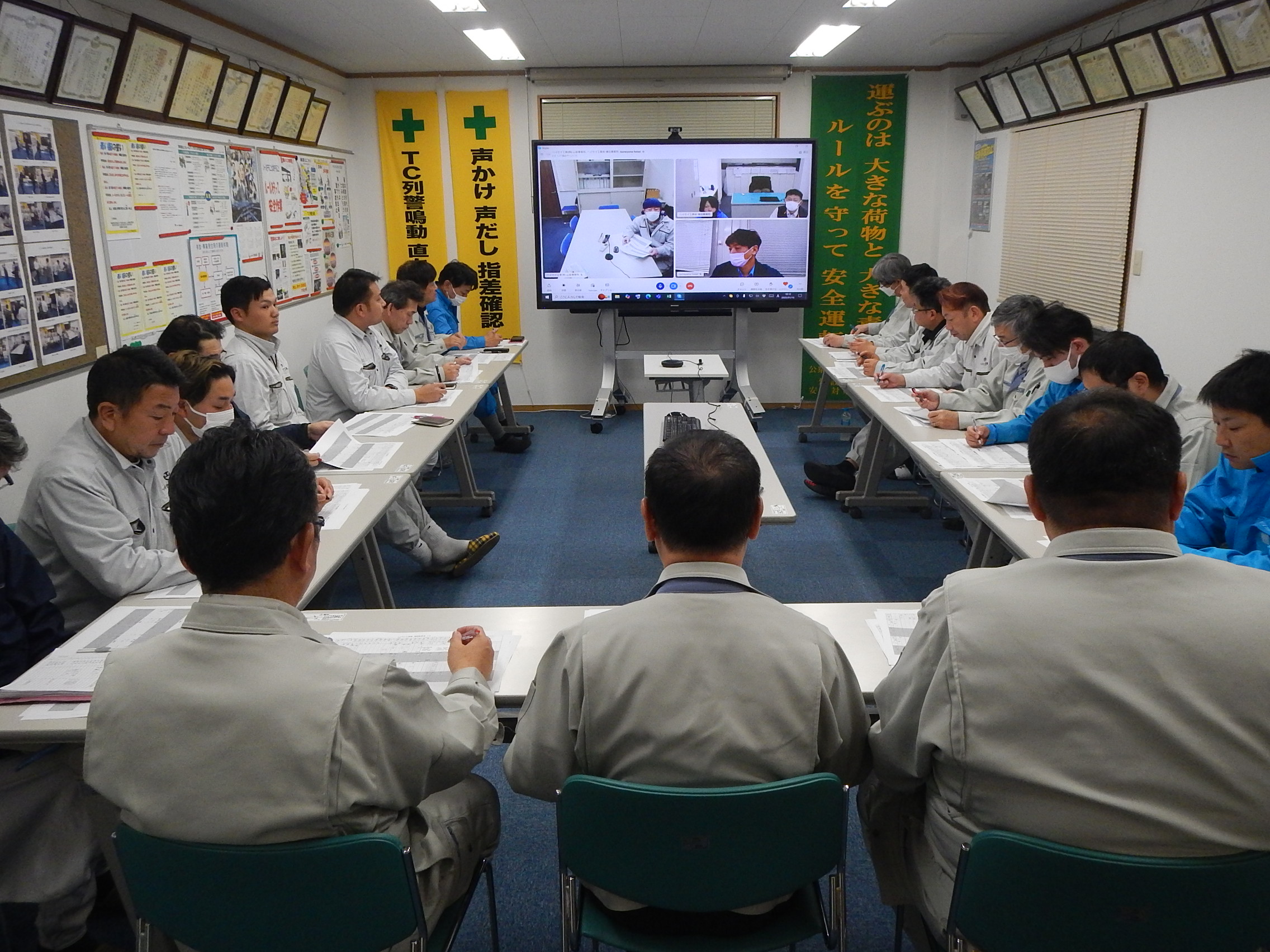 毎月1回、元請会社幹部を招き、当社社員・協力会社従事員で、他社の事故防止事例を検討、出席者による発表を通し、再発防止に取り組みます。