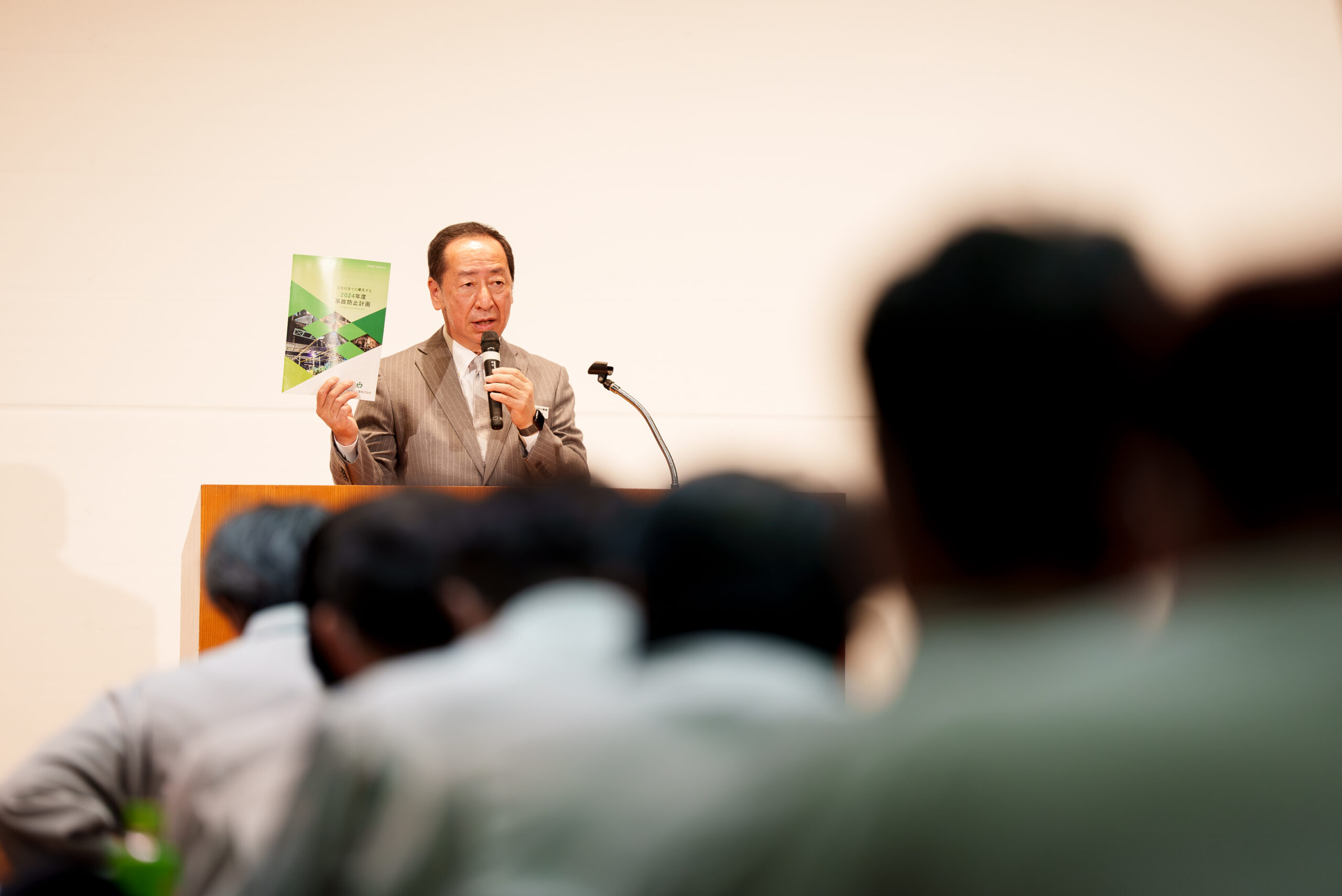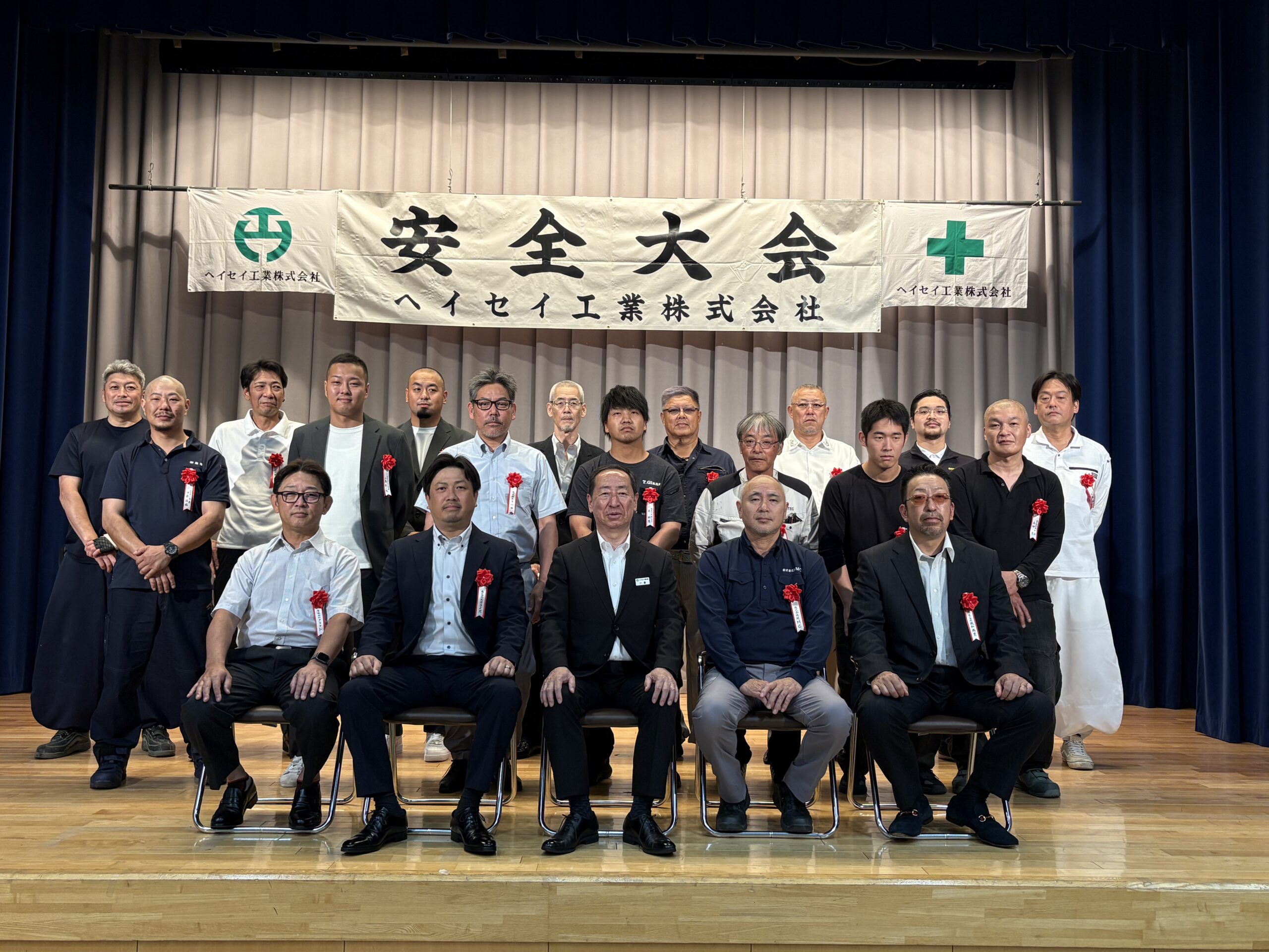 毎年6月に元請会社幹部を招き当該年度の安全への基本方針、安全目標および具体的な取り組みを共有するため、当社・協力会社従事員が一堂に会し、重大事故および致命的な労災事故を起こさない旨の誓いを立てます。